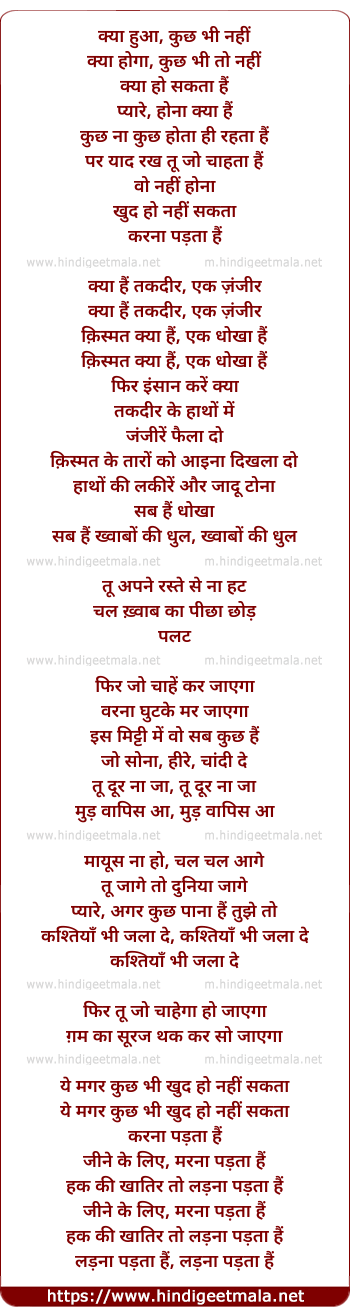 Lyrics of Kya Hua ( Mantra) - क्या हुआ, कुछ भी नहीं