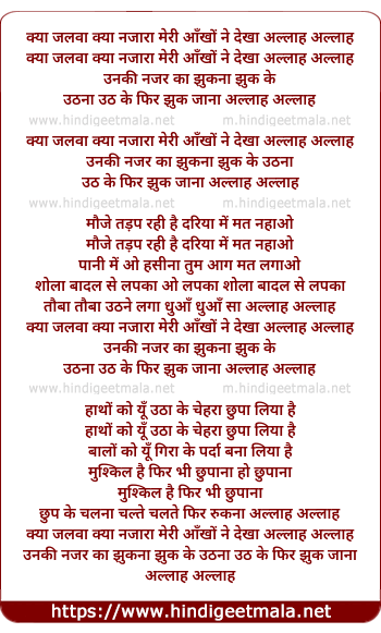 Lyrics of Kya Jalva Kya Nazara Meri Aankho Ne Dekha - क्या जलवा क्या नजारा मेरी आँखों ने देखा