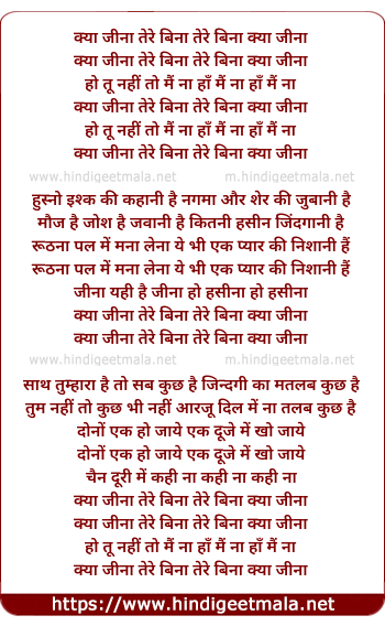 Lyrics of Kya Jeena Tere Bina - क्या जीना तेरे बिना