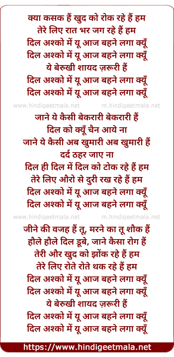 Lyrics of Kya Kasak Hain - क्या कसक हैं