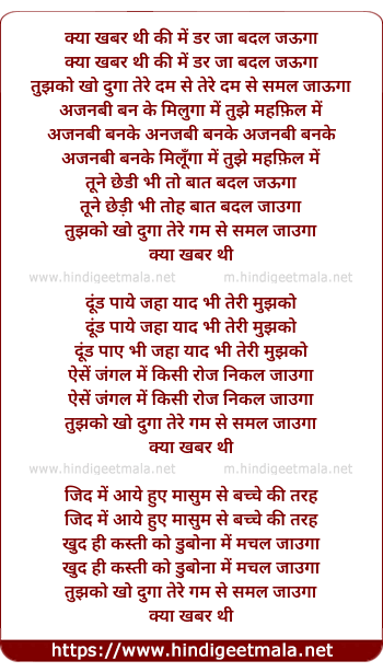 Lyrics of Kya Khabar Thee - क्या खबर थी
