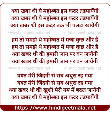Lyrics of Kya Khabar Thi Ye Mohabbat Is Kadar - क्या खबर थी ये महोब्बत इस कदर तडपायेंगी