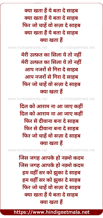 Lyrics of Kya Khata Hai Ye Bata De Sahab - क्या खता हैं ये बता दे साहब
