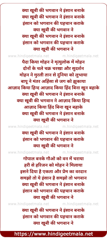 Lyrics of Kya Khubi Ki Bhagwan Ne Insan Banake - क्या खूबी की भगवान ने इंसान बनाके