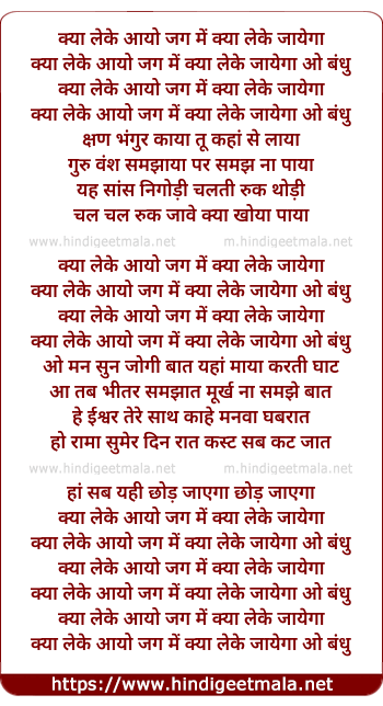 Lyrics of Kya Leke Aayo Jag Mein - क्या लेके आयो जग में