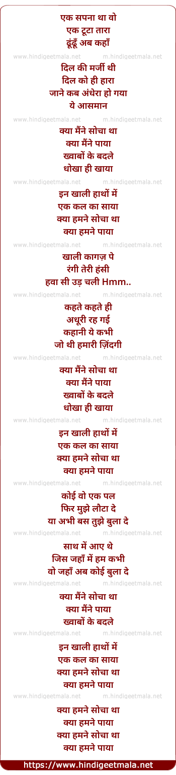 Lyrics of Kya Main Socha Tha Kya Maine Paaya - क्या मैं सोचा था क्या मैंने पाए