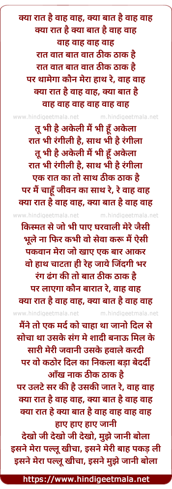 Lyrics of Kya Raat Hai Wah Wah - क्या रात है वाह वाह