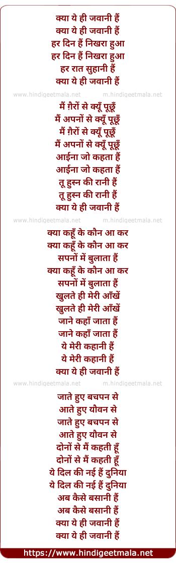 Lyrics of Kya Yahee Javanee Hai - क्या ये ही जवानी हैं