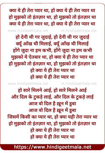 Lyrics of Kya Yehi Tera Pyar Tha - क्या ये ही तेरा प्यार था