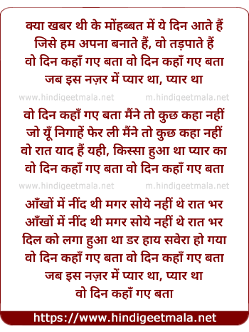 Lyrics of Kya Khabar Thi, Vo Din Kahan Gaye Bata - क्या खबर थी, वो दिन कहाँ गए बता