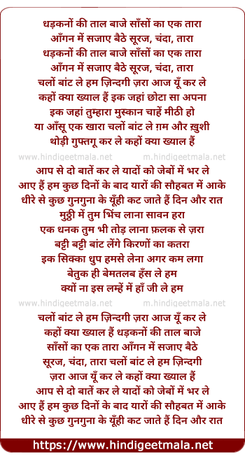 Lyrics of Kyaa Khayaal Hai - धड़कनों की ताल बाजे