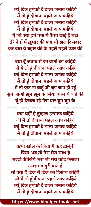 Lyrics of Kyo Dil Humko De Dala - क्यूँ दिल हमको दे डाला
