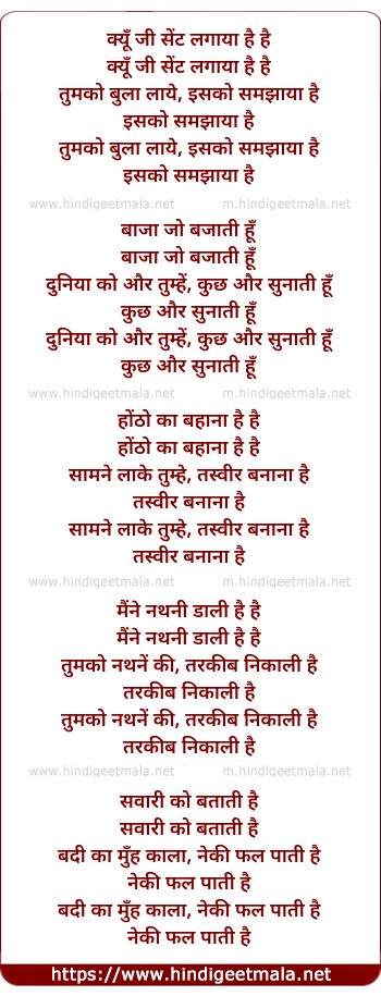 Lyrics of Kyo Ji Scent Lagaya Hai - क्यूँ जी सेंट लगाया है