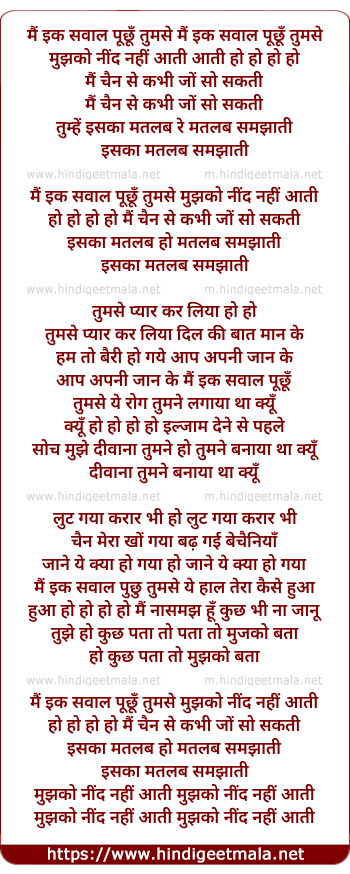 mai ik sawal puchu tumse mujhko neend nahi aati