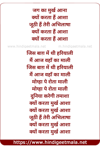 Lyrics of Kyon Karta Murakh Aasha, Jhuthi Hai Teri Abhilasha - जग का मुर्ख आना