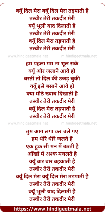 Lyrics of Kyu Dil Mera Tadpati Hai - क्यूँ दिल मेरा क्यूँ दिल मेरा तड़पाती है