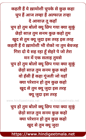 Lyrics of Kyu Judaa - कहती हैं ये ख़ामोशी चुपके से कुछ कहा