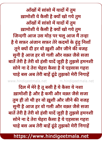 Lyrics of Kyu Khogaye - आँखों में सांसो में यादों में तुम
