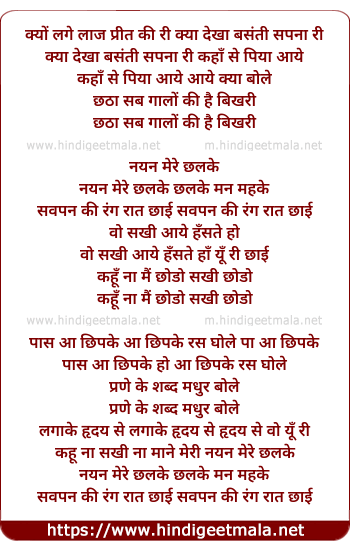kyu lage laaj preet ki ri kya dekha basanti sapna ri