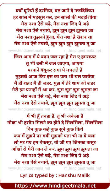 Lyrics of Kyu Duriya Hai Darmiya (Jhoom Jhoom Ta Ja) - क्यों दूरियाँ हैं दरमिया