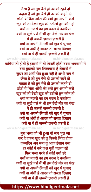 Lyrics of Kyun Na, Jaisa Hain Jo - जैसा है जो तुम वैसे ही उसको रहने दो