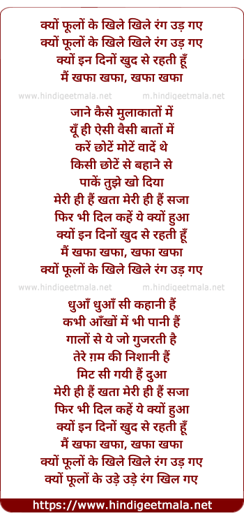 Lyrics of Kyun Phulon Ke Khile Khile Rang Udd Gaye - क्यों फूलों के खिले खिले रंग उड़ गए