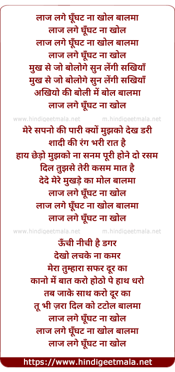 Lyrics of Laaj Lage Ghunghat Na Khol - लाज लगे घूँघट ना खोल