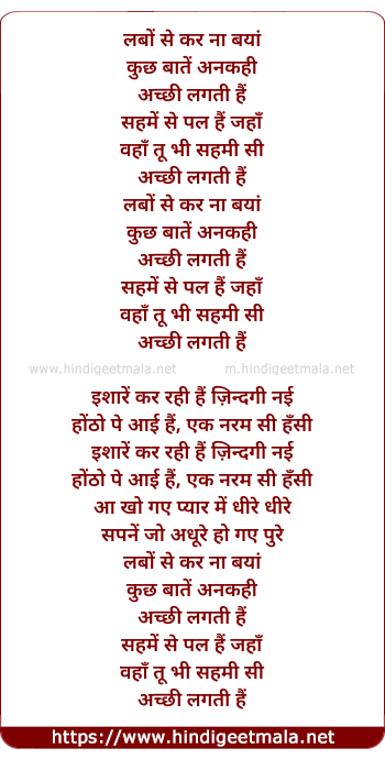Lyrics of Labon Se - लबों से कर ना बयां