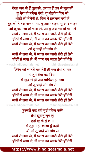 hontho se laga le, main jaan ban jaau teri ha teri