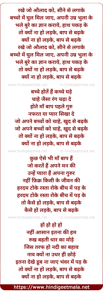 Poetic Translation - Lyrics of Ladke Baap Se Badhke - लड़के बाप से बढ़के