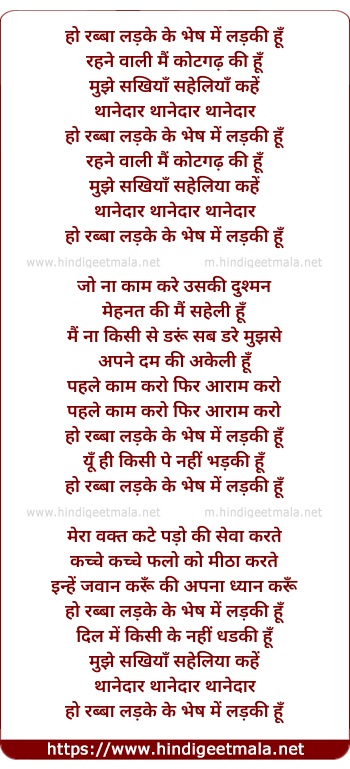 Lyrics of Ladke Ke Bhes Me Ladki Hu - लड़के के भेष में लड़की हूँ