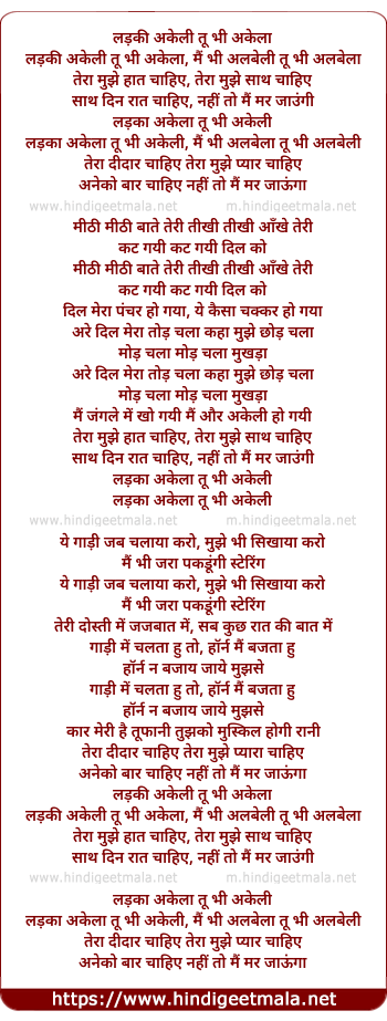 Lyrics of Ladki Akeli Tu Bhi Akela - लड़की अकेली तू भी अकेला
