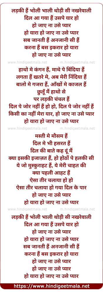 Lyrics of Ladki Hain Bholi Bhali, Thodi Si Nakhre Waali - लड़की हैं भोली भाली थोड़ी सी नखरेवाली