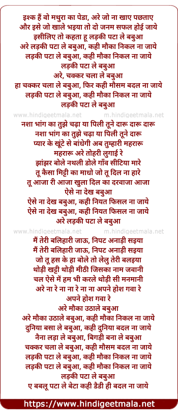 Lyrics of Ladki Pata Le Babuva, Kahi Maukaa - लड़की पटा ले बबुआ, कही मौका
