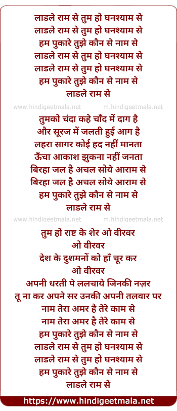 Lyrics of Ladle Ram Se Tum Ho Ghanshyam Se - लाडले राम से तुम हो घनश्याम से