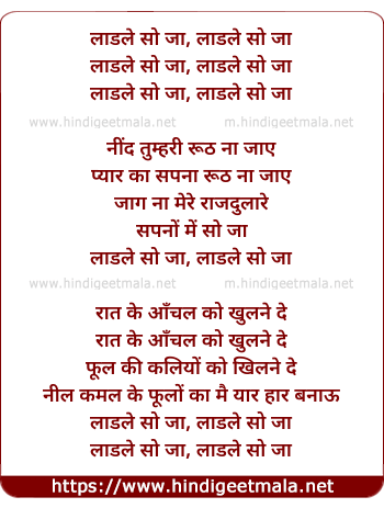 Lyrics of Ladle So Ja, Ladle So Ja - लाडले सो जा, लाडले सो जा