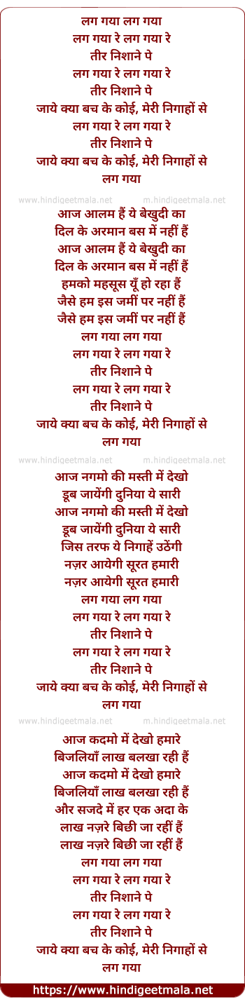 Lyrics of Lag Gaya Lag Gaya Lag Gaya Re Teer Nishane Pe - लग गया लग गया लग गया रे तीर निशाने पे