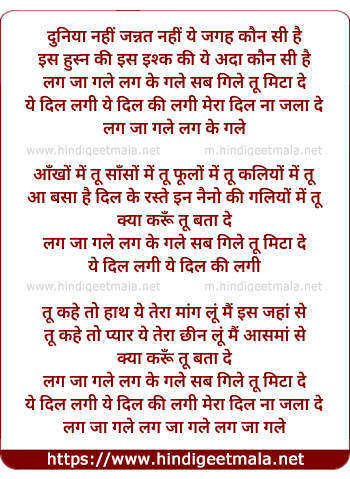 Poetic Translation - Lyrics of Lag Jaa Gale - लग जा गले