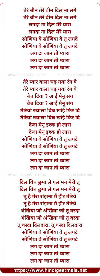 Lyrics of Lagda Na - तेरे बीन तेरे बीन दिल ना लगे