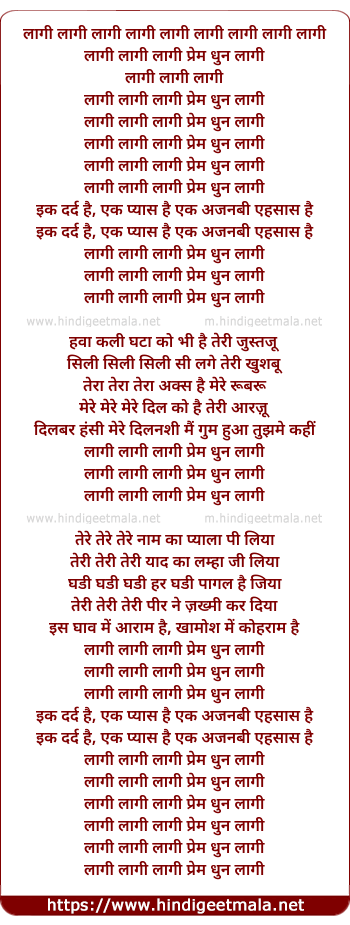 Lyrics of Lagi Lagi Lagi Prem Dhun Lagi - लागी लागी लागी प्रेम धुन लागी