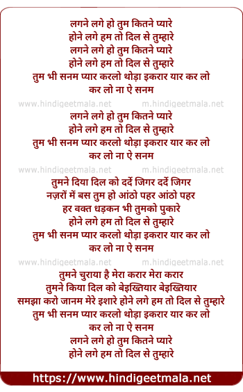 Lyrics of Lagne Lage Ho Tum Kitne Pyare - लगने लगे हो तुम कितने प्यारे