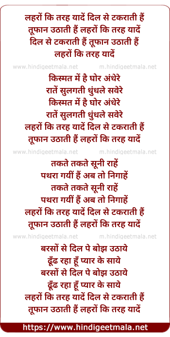Lyrics of Lahro Ki Tarah Yaade Dil Se Takrati Hai - लहरों की तरह यादें दिल से टकराती हैं