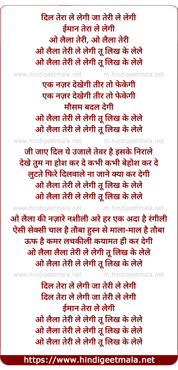 Lyrics of O Laila Teri Le Legi Tu Likh Ke Lele - ओ लैला तेरी ले लेगी तू लिख के लेले