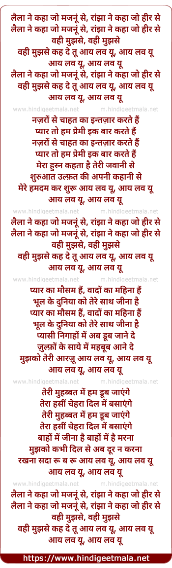 Lyrics of Laila Ne Kaha Jo Majnu Se - लैला ने कहा जो मजनूं से