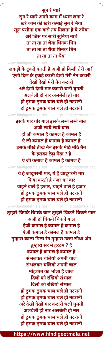 ho thumak thumak chaal chale ho natraani