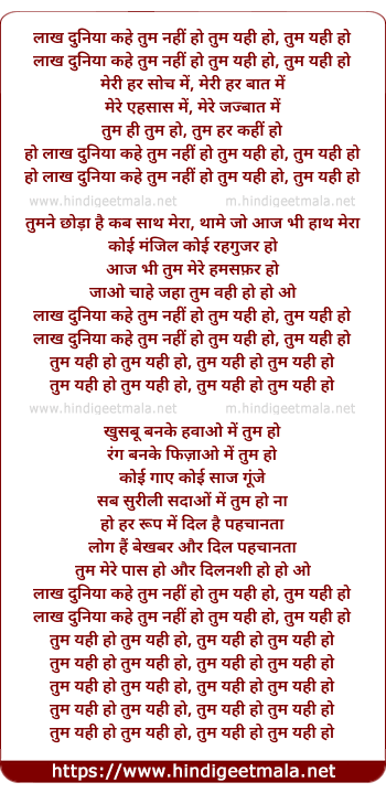 Lyrics of Lakh Duniya Kahe Tum Nahi Ho - लाख दुनिया कहे तुम नहीं हो