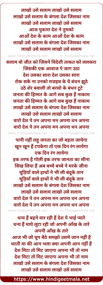 Lyrics of Lakho Usey Salaam - लाखो उसे सलाम