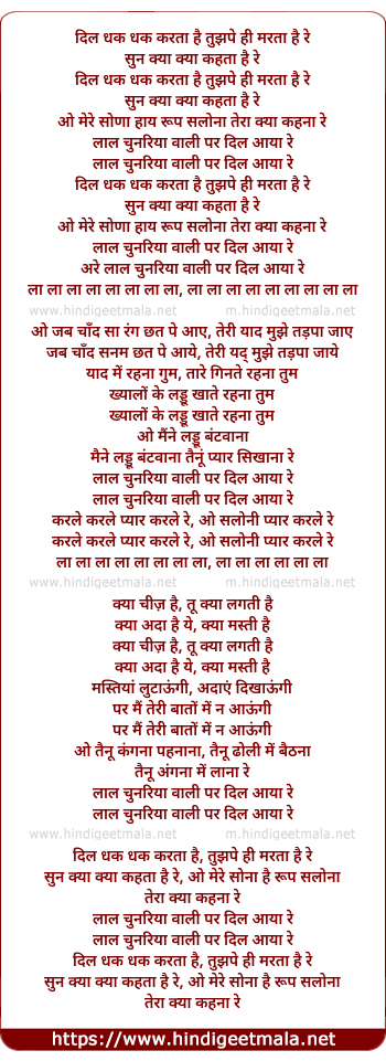 Lyrics of Lal Chunariya Wali Pe Dil Aaya Re - लाल चुनरिया वाली पे दिल आया रे