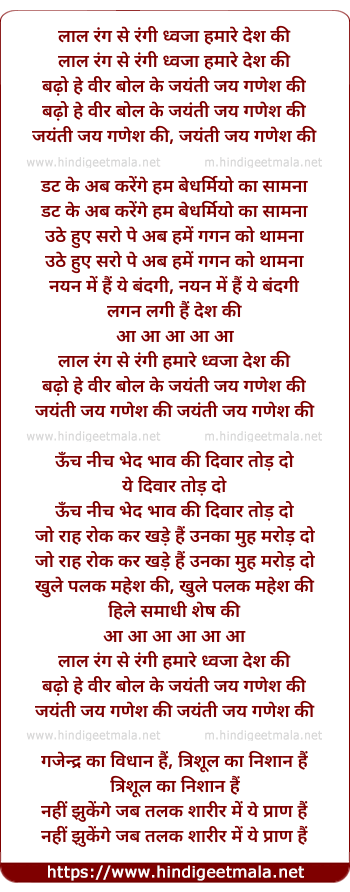 Lyrics of Lal Rang Se Rangi Dhwaja Hamare Desh Ki - लाल रंग से रंगी ध्वजा हमारे देश की