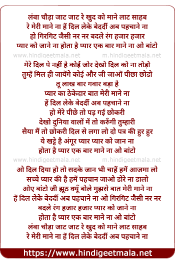 Lyrics of Lamba Chauda Jat Jat Khud Ko Mane Lat - लंबा चौड़ा जाट जाट रे खुद को माने लाट
